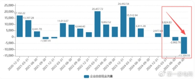 这主要源自销售回款的显著减弱,以及三费表现拖累。财报显示前三季度彩虹集团经营性现金流大幅下滑至-89.06亿元,同比下降277.64%,占营业收入比例由2024Q3同期的6.32%降至-13.43%.