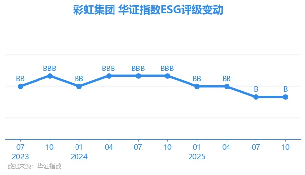日前,华证指数公布了新一期(2025年10月31日)的ESG评级结果,彩虹集团(003023.SZ)获得B评级(华证指数评级为C起至AAA九档,C为最低档,AAA为其最高一级评级/AA为其第二档),上一期(2025年7月31日)ESG评级为B。本期ESG评级在148家家庭耐用消费品行业A股上市公司中排名第52(上一期排名第52)。