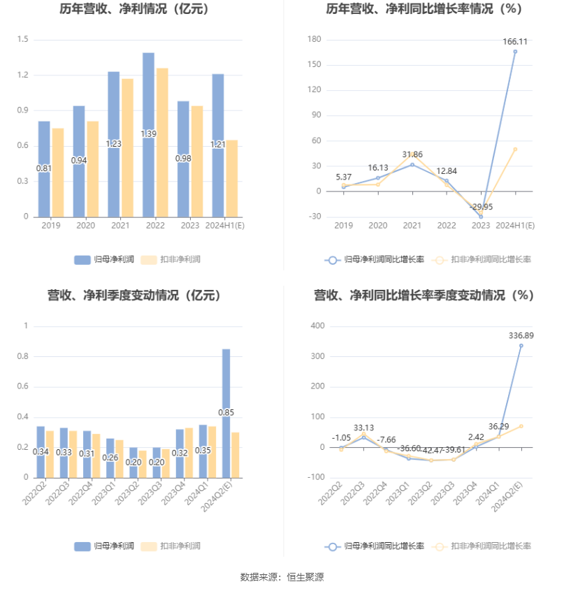 2024年半年度,公司确认了位于江南路1832号生产基地的资产处置收益,上述收益为非经常性损益,增加了公司2024年半年度税后净利润约5528.48万元。