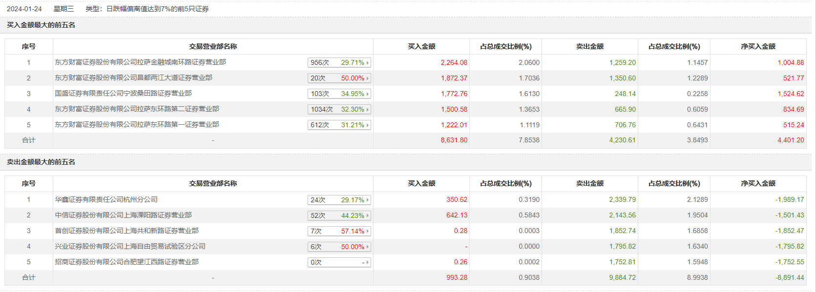 1月24日,同兴环保今日跌停,龙虎榜数据显示,上榜营业部席位全天成交2.37亿元,占当日总成交金额比例为21.6%。其中,买入金额为9625.08万元,卖出金额为1.41亿元,合计净卖出4490.25万元。