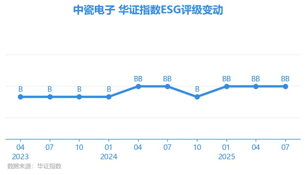 日前,华证指数公布了新一期(2025年7月31日)的ESG评级结果,中瓷电子(003031.SZ)获得BB评级(华证指数评级为C起至AAA九档,C为最低档,AAA为其最高一级评级/AA为其第二档),上一期(2025年4月30日)ESG评级为BB。本期ESG评级在147家家庭耐用消费品行业A股上市公司中排名第44(上一期排名第39)。