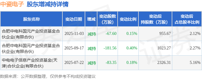 截至2025年11月27日收盘,中瓷电子(003031)报收于52.13元,上涨0.35%,换手率0.51%,成交量1.72万手,成交额9026.23万元。