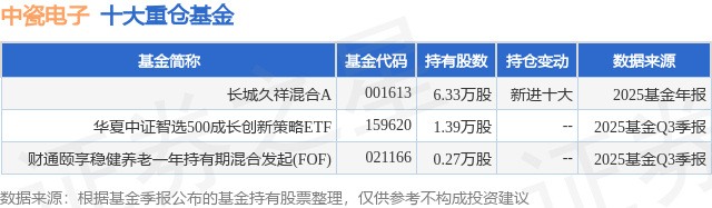 重仓中瓷电子的公募基金请见下表: