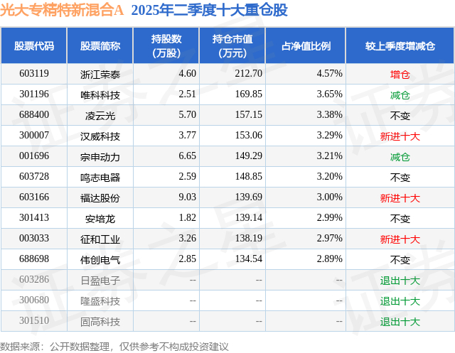 根据2025基金半年报公募基金重仓股数据,重仓该股的公募基金共1家,其中持有数量最多的公募基金为光大保德信基金的光大专精特新混合A。光大专精特新混合A目前规模为0.28亿元,最新净值1.2268(10月15日),较上一交易日上涨3.8%,近一年上涨63.42%。该公募基金现任基金经理为崔书田。崔书田在任的基金产品包括:光大保德信中国制造2025灵活配置混合A,管理时间为2020年7月1日至今,期间收益率为52.33%;光大新增长混合A,管理时间为2022年8月27日至今,期间收益率为-7.69%;光大保德信研究精选混合A,管理时间为2025年3月19日至今,期间收益率为24.9%。