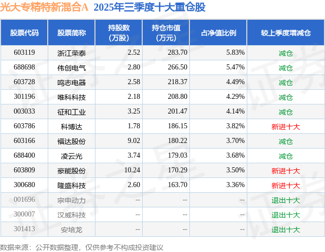 光大专精特新混合A的前十大重仓股如下: