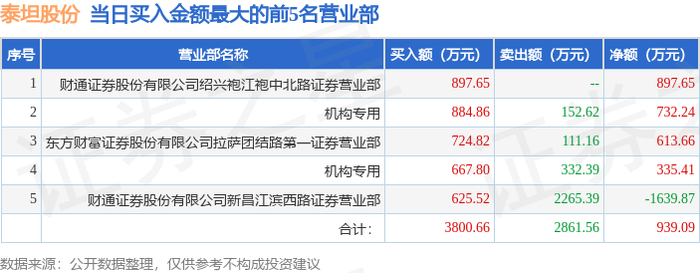 11月3日泰坦股份(003036)龙虎榜数据:机构净买入1067.65万元