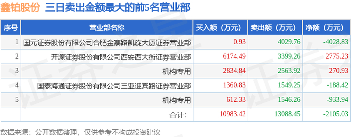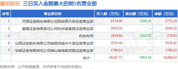 10月23日鑫铂股份(003038)龙虎榜数据:游资佛山系上榜