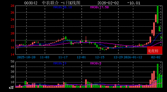 截止收盘,中农联合报收18.52元/股,涨幅-10.01%,成交量24万手,成交额4.55亿元,换手率19.2%。今日未涨停。