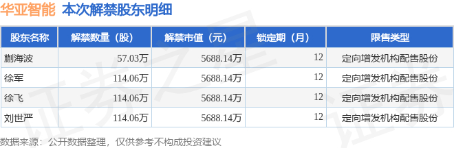 华亚智能(003043)399.21万股限售股将于10月24日解禁,占总股本2.98%