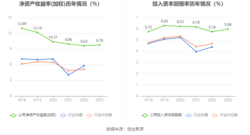 数据显示,2023年公司加权平均净资产收益率为9.76%,较上年同期增长0.13个百分点;公司2023年投入资本回报率为5.98%,较上年同期增长0.24个百分点。