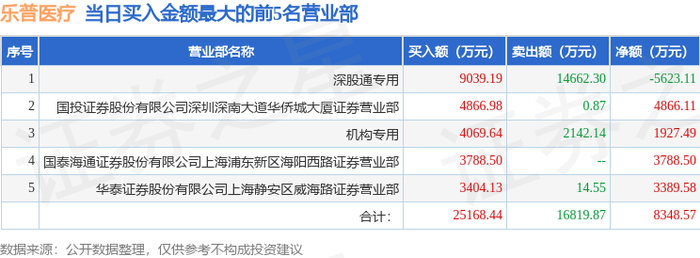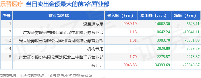 1月5日乐普医疗(300003)龙虎榜数据:游资章盟主上榜