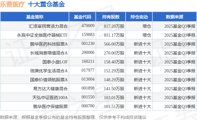 重仓乐普医疗的前十大公募基金请见下表:
