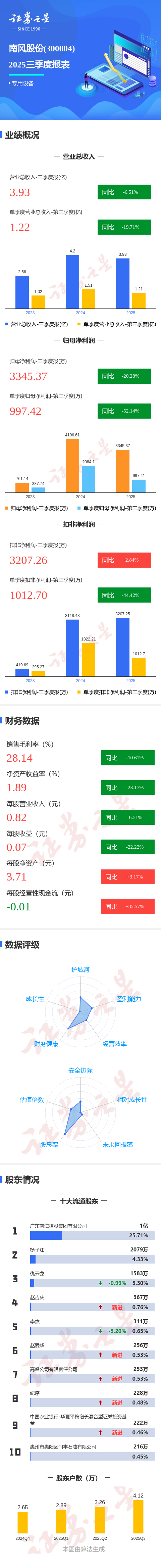 图解南风股份三季报:第三季度单季净利润同比下降52.14%