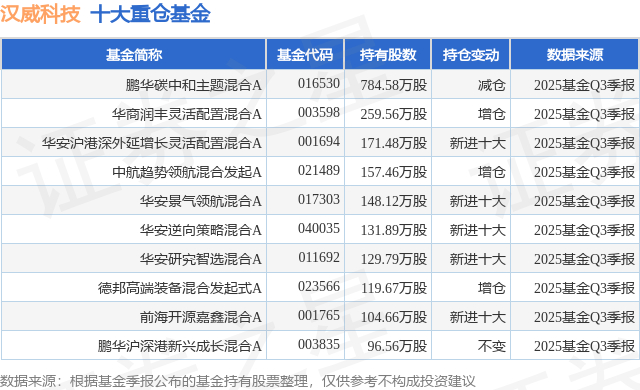 重仓汉威科技的前十大公募基金请见下表: