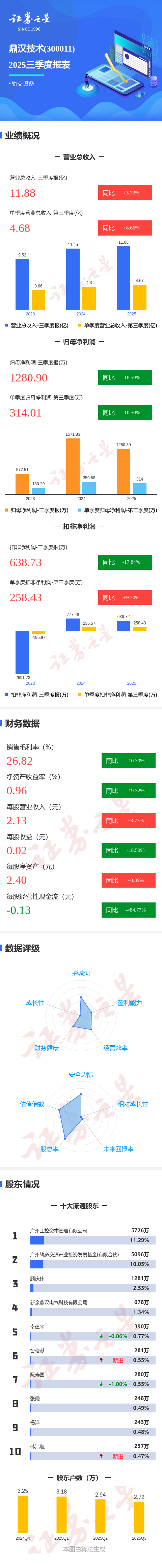 图解鼎汉技术三季报:第三季度单季净利润同比下降10.51%