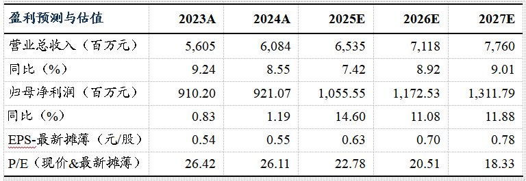 我们维持公司归母净利润预测为10.6/11.7/13.1亿元,当前市值对应PE 23/21/18x,维持“增持”评级。