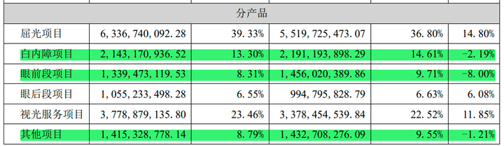 一是,营收占比13.3%的白内障项目,同比下滑2.19%,而前两年均保持了同比11%以上的增长。
