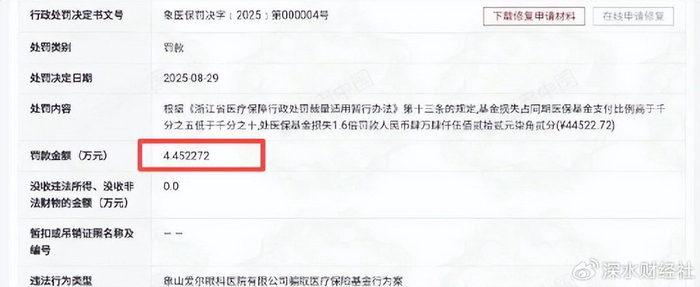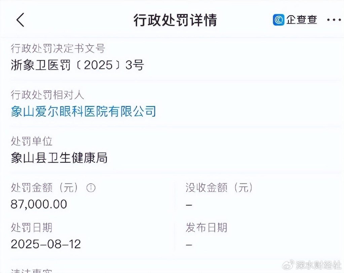 2025年7月,因违法违规使用医保基金,本溪爱尔眼科医院有限公司被处罚9.2万余元。