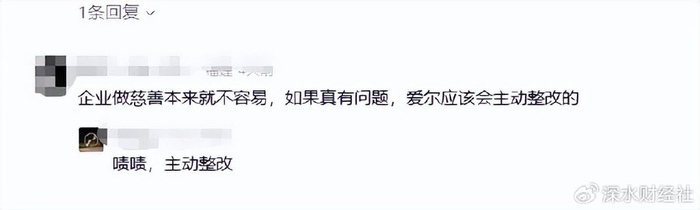 在网易清流的报道下方有句评论,“企业做慈善本来就不容易,如果真有问题,爱尔应该会主动整改的”。