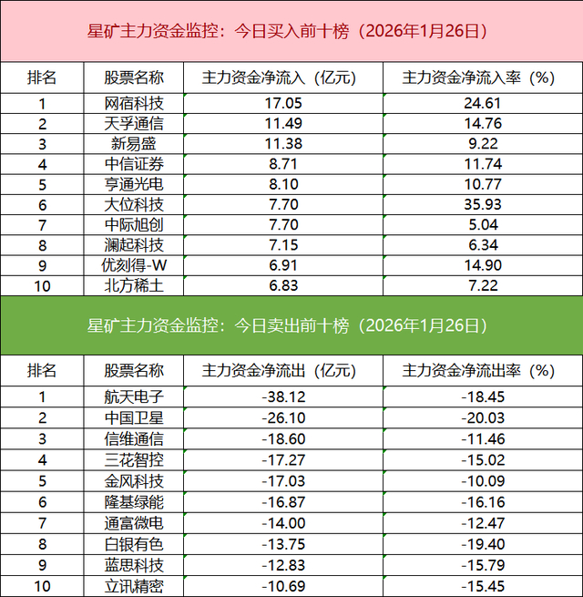 主力资金流出前十的个股所属板块较为分散,航天电子净流出居首。