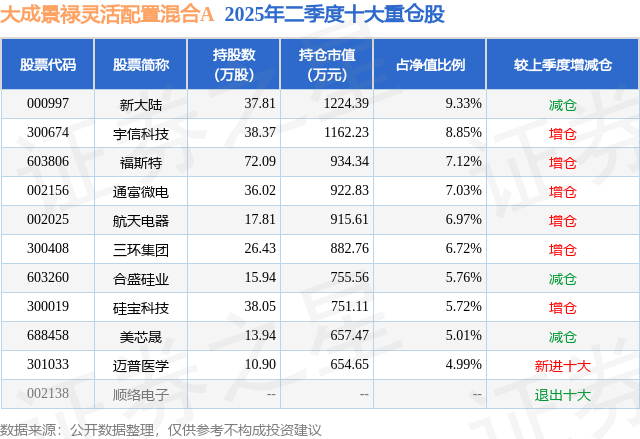 根据2025基金半年报公募基金重仓股数据,重仓该股的公募基金共3家,其中持有数量最多的公募基金为大成基金的大成景禄灵活配置混合A。大成景禄灵活配置混合A目前规模为0.3亿元,最新净值1.9379(8月28日),较上一交易日上涨1.24%,近一年上涨105.48%。该公募基金现任基金经理为李煜。李煜在任的基金产品包括:大成红利优选一年持有混合发起A,管理时间为2022年11月24日至今,期间收益率为42.22%;大成恒享混合A,管理时间为2023年3月30日至今,期间收益率为26.18%;大成优质精选混合A,管理时间为2024年12月27日至今,期间收益率为27.31%。