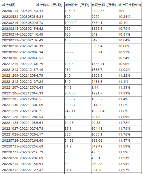 根据公告,持股5%以上的股东姚小青计划自公告披露之日起十五个交易日后的三个月内以集中竞价或大宗交易方式减持公司股份不超过46,936,332股,占公司总股本比例1.5624%;高级管理人员陈瑞强计划自公告披露之日起十五个交易日后的三个月内以集中竞价交易方式减持公司股份不超过169,000股,占公司总股本比例0.0056%;高级管理人员张坤计划自公告披露之日起十五个交易日后的三个月内以集中竞价交易方式减持公司股份不超过232,000股,占公司总股本比例0.0077%。合计减持不超过47,337,332股,占公司总股本比例1.5757%。