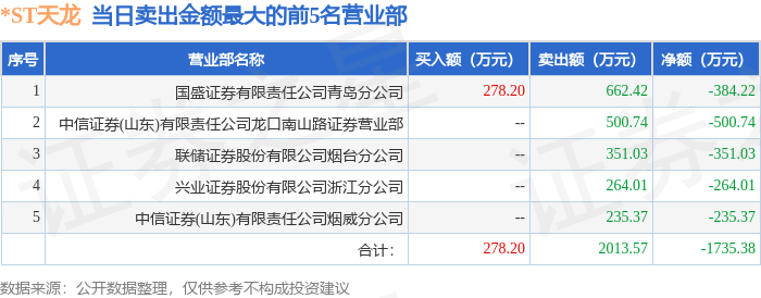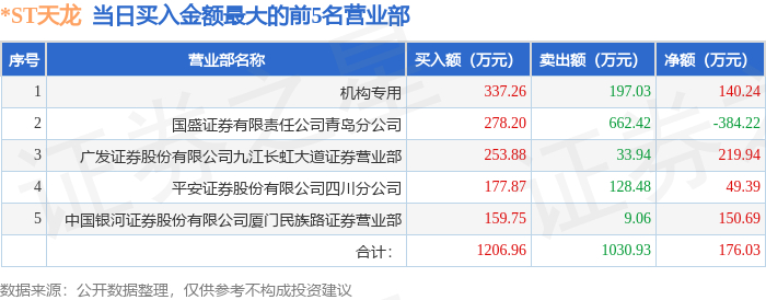 12月30日*ST天龙(300029)龙虎榜数据:机构净买入140.24万元