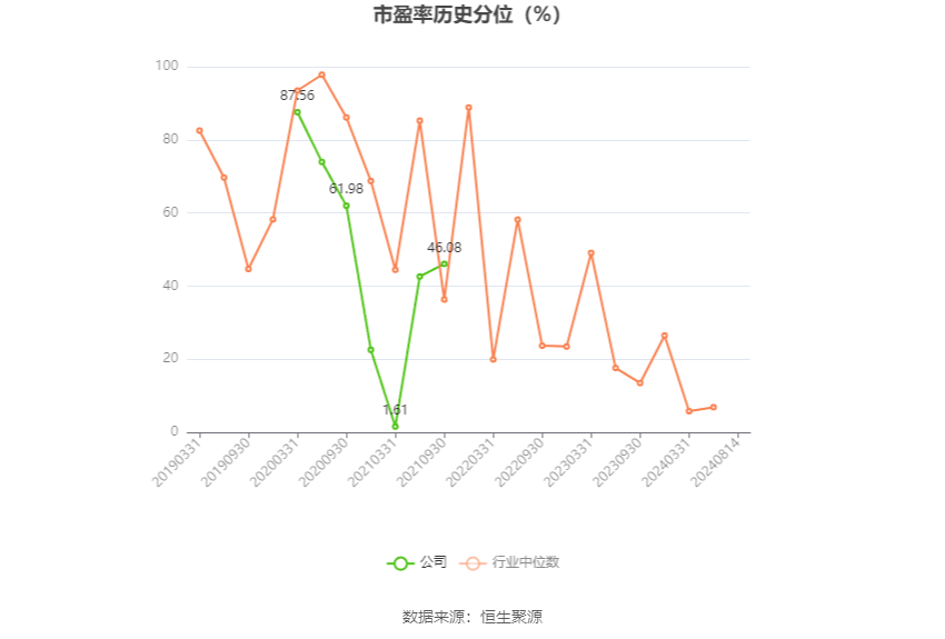 市盈率为负时,不显示当期分位数,会导致折线图中断。