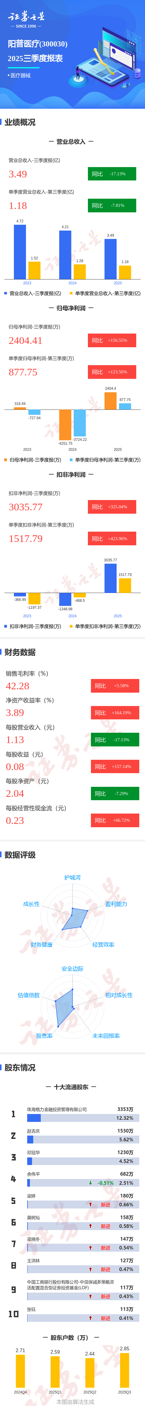图解阳普医疗三季报:第三季度单季净利润同比增长123.57%