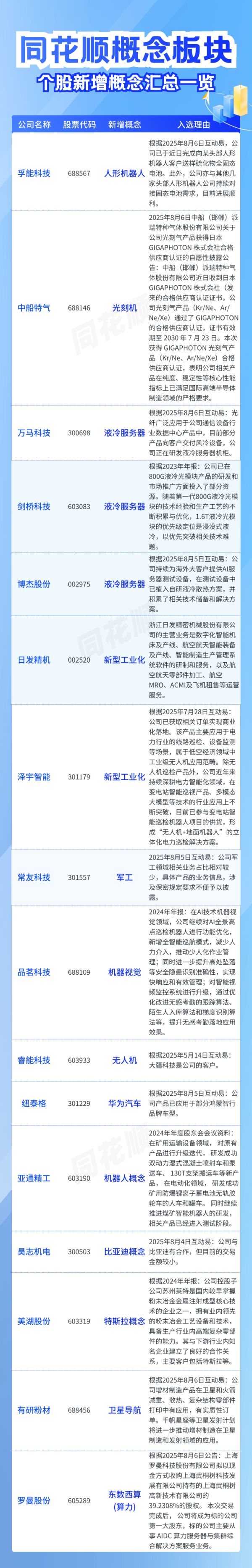 其他个股新增概念,请关注同花顺站内的“概念速递”功能!