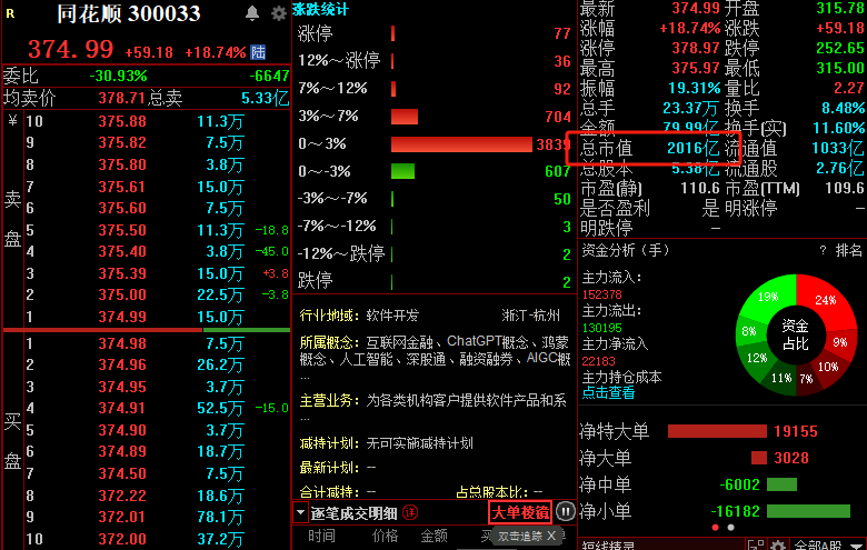 (300033)涨超17%,市值突破2000亿元,股价创历史新高。