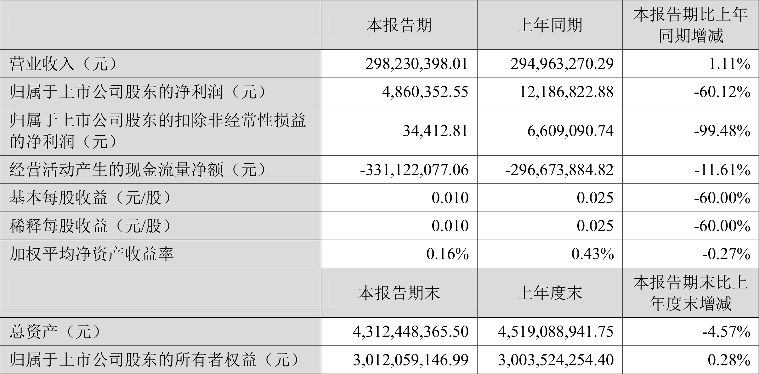 数据显示,2024年第一季度公司加权平均净资产收益率为0.16%,较上年同期下降0.27个百分点;公司2024年第一季度投入资本回报率为0.10%,较上年同期下降0.20个百分点。
