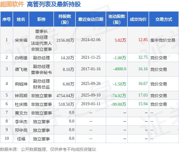 超图软件的高管列表及最新持股情况如下:
