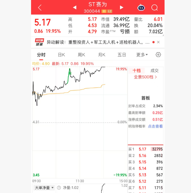 个股异动|ST赛为午后涨停 公开招募和遴选重整投资人