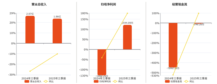 公司营业总收入为1.86亿元,在已披露的同业公司中排名第24,较去年同报告期营业总收入减少2111.02万元,同比较去年同期下降10.22%。归母净利润为1544.09万元,在已披露的同业公司中排名第13。经营活动现金净流入为-146.26万元,在已披露的同业公司中排名第14。