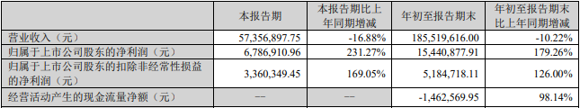 今年前三季度,世纪鼎利实现营业收入1.86亿元,同比减少10.22%;归属于上市公司股东的净利润1544.09万元,同比增长179.26%;归属于上市公司股东的扣除非经常性损益的净利润518.47万元,同比增长126.00%;经营活动产生的现金流量净额为-146.26万元。