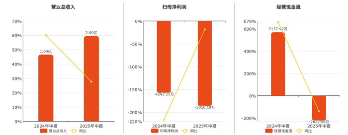 公司营业总收入为2.09亿元,较去年同报告期营业总收入增加5532.96万元,实现3年连续上涨,同比较去年同期上涨35.90%。归母净利润为-5016.19万元。经营活动现金净流入为-2822.96万元。