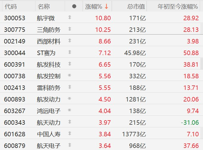 格隆汇1月27日|A股太空概念股走强,其中,航宇微、三角防务涨超10%,西部材料涨超8%,航发控制、雷科防务涨超5%,航发动力、鸿远电子涨超4%。