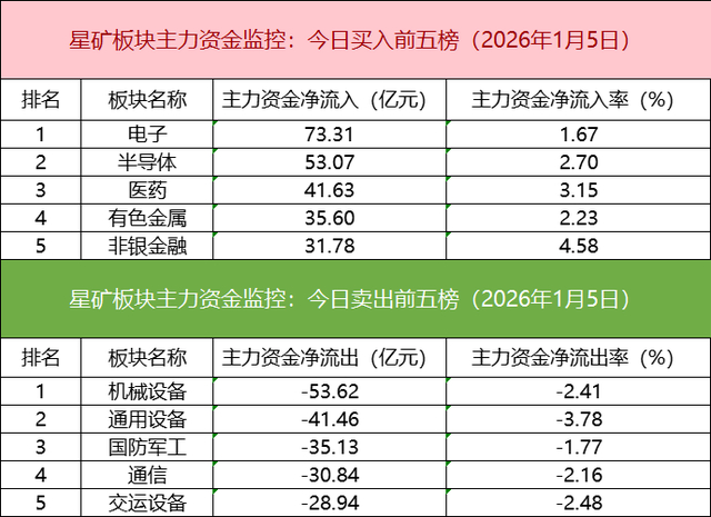 板块资金流出方面,机械设备板块主力资金净流出居首。