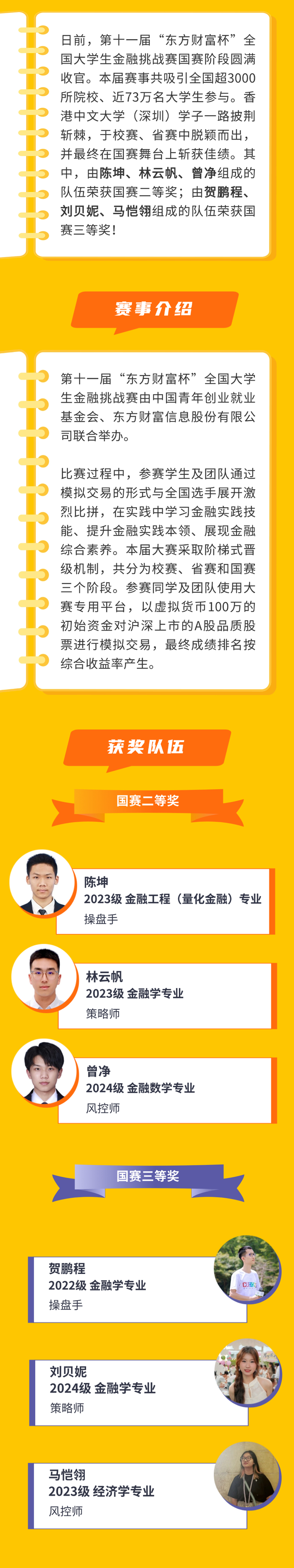 港中大(深圳)学子斩获第十一届“东方财富杯”全国大学生金融挑战赛国赛二等奖、三等奖! | 商赛π