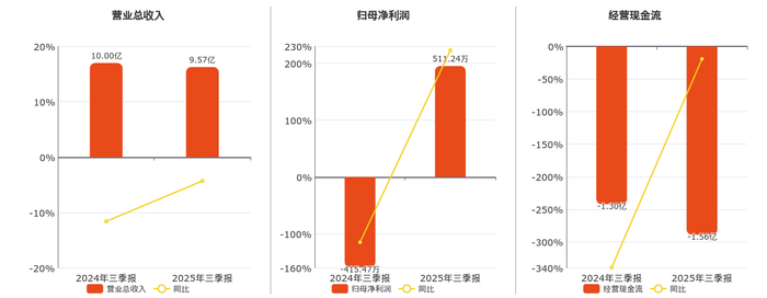 公司营业总收入为9.57亿元,较去年同报告期营业总收入减少4302.38万元,同比较去年同期下降4.30%。归母净利润为511.24万元。经营活动现金净流入为-1.56亿元,较去年同报告期经营活动现金净流入减少2522.87万元。