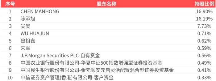 公司股东户数为2.82万户,前十大股东持股数量为2.48亿股,占总股本比例为44.54%,前十大股东持股情况如下: