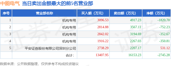 11月14日中能电气(300062)龙虎榜数据:机构净卖出1231.26万元