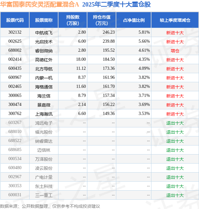华富国泰民安灵活配置混合A的前十大重仓股如下:
