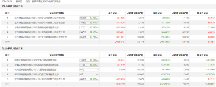 具体来看,知名游资现身龙虎榜,东方财富证券拉萨团结路第二证券营业部、东方财富证券拉萨东环路第二证券营业部分别买入4878.95万元、4438.38万元;宁波桑田路(国盛证券宁波桑田路证券营业部)、华鑫证券珠海海滨南路证券营业部分别卖出6034.73万元、5791.95万元。