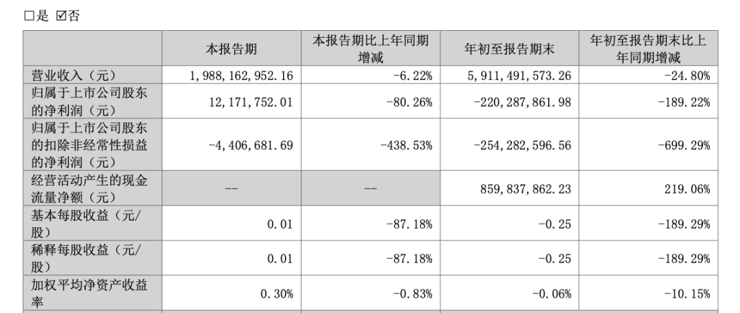 南都电源(300068)发布2025年三季度报,今年前三季度,公司实现营收59.11亿元,同比下降24.8%;归属于上市公司股东的净利润-2.2亿元,由盈转亏。其中,第三季度营收为19.88亿元,同比下降6.22%;归属于上市公司股东的净利润1217.18万元,同比下降80.26%。