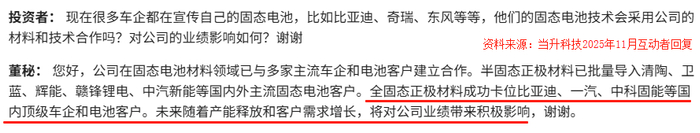 到了11月,公司又宣布,其全固态电池材料“已成功切入比亚迪、一汽等主流车企供应链”。