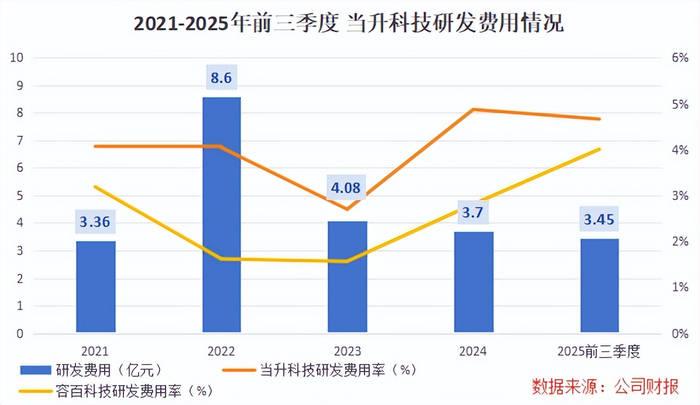 公司很早就锁定了氧化物电解质路线,始终保持高强度研发。2021-2025年前三季度,其累积投入了研发费用23.19亿,研发费用率显著高于同行容百科技等。