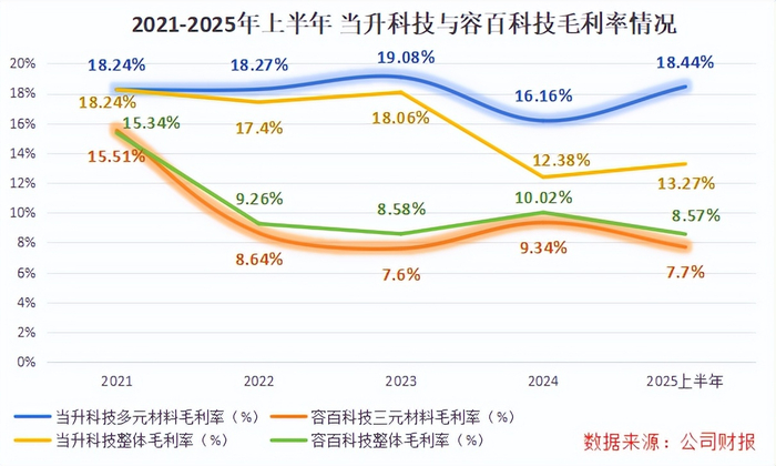 数据最能说话,2021-2025年上半年,当升科技的多元材料毛利率大多数时间维持在18%以上,优异的技术溢价能力,成功带动公司整体毛利率稳定在12%以上。