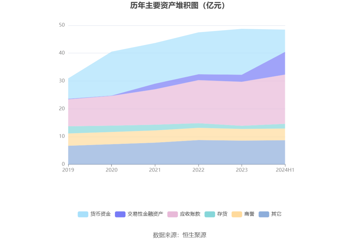 资产重大变化方面,截至2024年上半年末,公司货币资金较上年末减少51.72%,占公司总资产比重下降17.41个百分点;交易性金融资产较上年末增加224.25%,占公司总资产比重上升11.72个百分点;应收账款较上年末增加11.88%,占公司总资产比重上升4.07个百分点;存货较上年末增加51.02%,占公司总资产比重上升1.18个百分点。